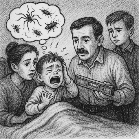 Mi madre no sabía qué hacer, ni mi padre, ni mi hermano que expectantes trataban en vano de tranquilizarme. No entendían qué era lo que me pasaba. Mi padre reparó por un instante en lo ocurrido esa tarde, y fue a buscar la caja metálica, para enseñarme que no había tal bicho. Pero cuando intentaba acercarme la caja, más desesperado gritaba, —Nooo, bicho, nooo!
