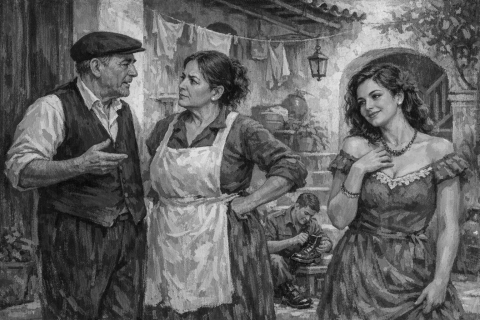 Entró Antonia en el interior de la casa, por el amplio zaguán, y se encontró con Adelina, la hija, que estaba en esa edad del coqueteo y de la juventud. Se acababa de poner colorete y un poco de agua de rosas en el escote. —Mira hija, ¡tu padre! Dice que venia por la calle arriba el pescadero, con una cesta de peces fresquitos, y no ha sido para echar un kilito por lo menos, con eso y unos tomatillos fritos, hubiésemos resuelto el almuerzo. ¡Estos hombres, desde luego no tienen alcance ninguno!— Adelina respondió —a ver madre, pues si es de buena familia, dígale que haga por verme.